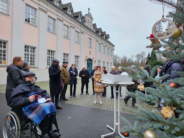 Pater Wehrle stimmte dann Adventslieder und Weihnachtslieder an, der diesen Moment die Verbundenheit der Gruppen spürbar machte.