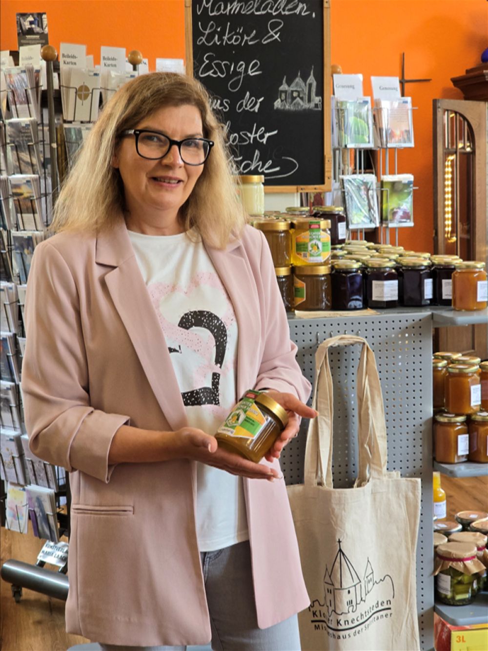 Seit einem Jahr leitet Michaela Müller den Klosterladen von Knechtsteden – mit Herz, Erfahrung und einem feinen Gespür für Menschen und Momente. Im Interview mit dem Spiritanerpater Samuel Mgbecheta erzählt die einst selbständige Immobilienmaklerin und Mutter von zwei erwachsenen Kindern von ihrer persönlichen Motivation, der besonderen Atmosphäre zwischen Basilika und Verkaufsraum, der unschätzbaren Rolle der Ehrenamtlichen – und davon, warum der Klosterladen für viele ein stiller Nachklang der Basilika ist.